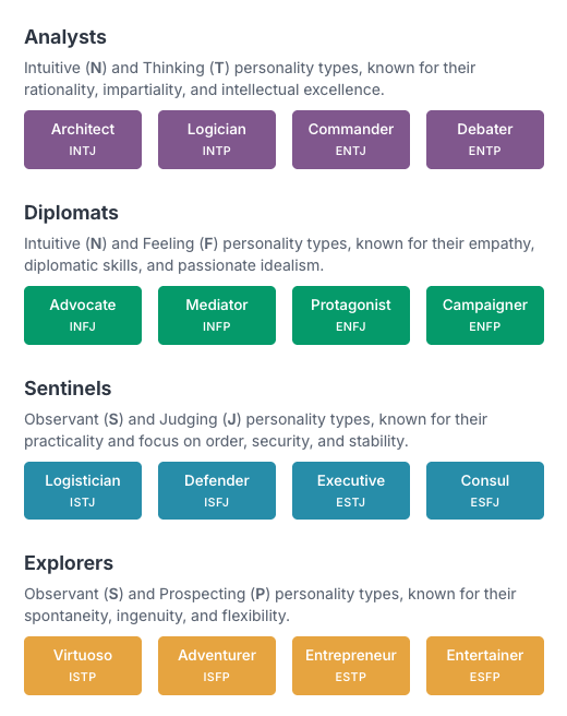 Why it’s helpful: Knowing your MBTI type is like having a map of your strengths and stress points. It helps with setting boundaries, communicating clearly, and understanding why some tasks or environments feel natural—while others feel draining.